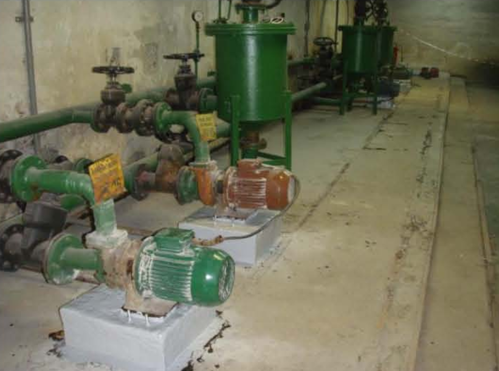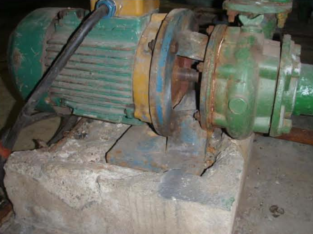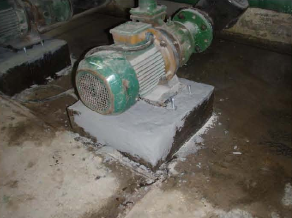 Opis naprawy: Zniszczone fundamenty w bardzo krótkim czasie zostały naprawione bez demontażu pomp i dodatkowo całość postumentu zabezpieczona szczelną powłoką ochronną.