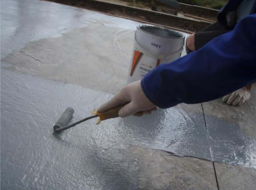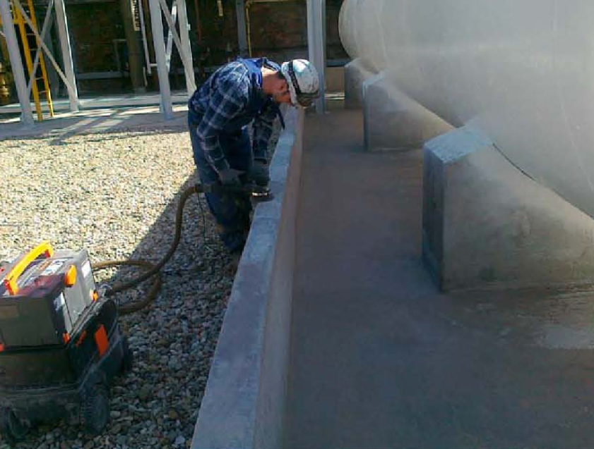 W miejsce starej i złuszczonej powłoki zastosowano materiał na bazie epoksydów wg systemów Rendor. Ze względu na umiejscowienie zbiornika, powierzchnia została przygotowana przy użyciu szlifierek kątowych.