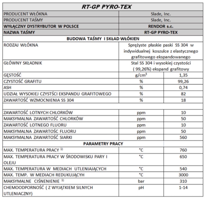 Parametry RT-GP PYRO-TEX umożliwiają pracę w trudnych warunkach, takich jak atmosfera utleniająca do temperatury 540°C oraz środowisko obojętne do maksymalnej temperatury 760°C.