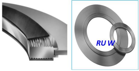 Wielokrawędziowe uszczelki metalowe typu RU W wykonywane są ze stali oraz miękkich nakładek. W celu zabezpieczenia przylg przed mechanicznym niszczeniem przez uszczelkę, stosuje się nakładki o grubościach możliwie cienkich, pamiętając aby po ściśnięciu nie następował kontakt uszczelki z przylgą. Optymalna grubość nakładek, w stanie obciążonym, po ściśnięciu to 0,07+_ 0,02mm. Grubość początkowa nakładki zależna jest od stanu kołnierzy oraz właściwości zastosowanych materiałów (na przylgi obrabiane zgrubnie ok. 0,8+_ 0,2 mm, na kołnierze szlifowane ok. 0,5 +_ 0,2 mm).Kształt profil i stalowych w uszczelkach typu RU W określa PN 86/H-74374/10. Korzystając z nowoczesnego centrum obróbczego CNC wykonujemy uszczelki zgodnie z normą oraz wg. specjalnych zaleceń.