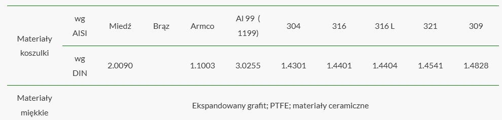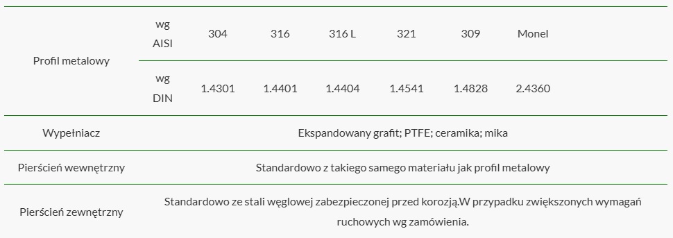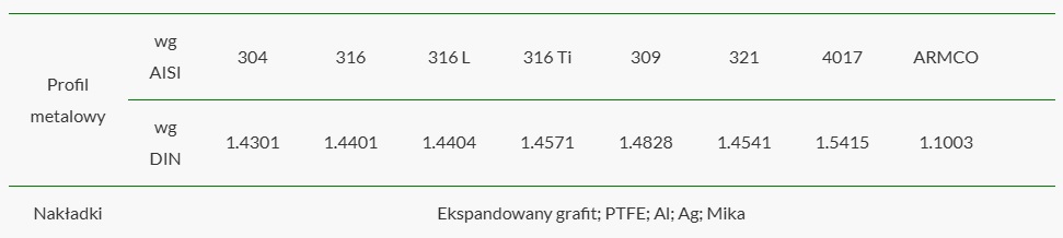 MATERIAŁY UŻYWANE DO USZCZELNIEŃ SPIRALNYCH RU S