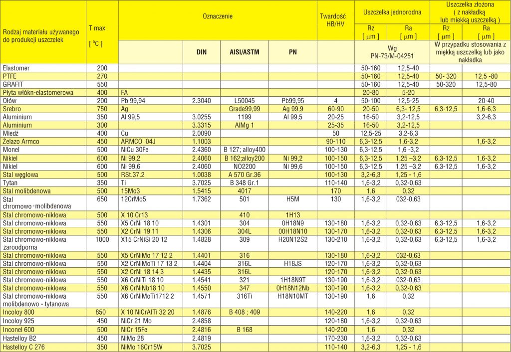 MATERIAŁY UŻYWANE DO USZCZELNIEŃ SPIRALNYCH RU S