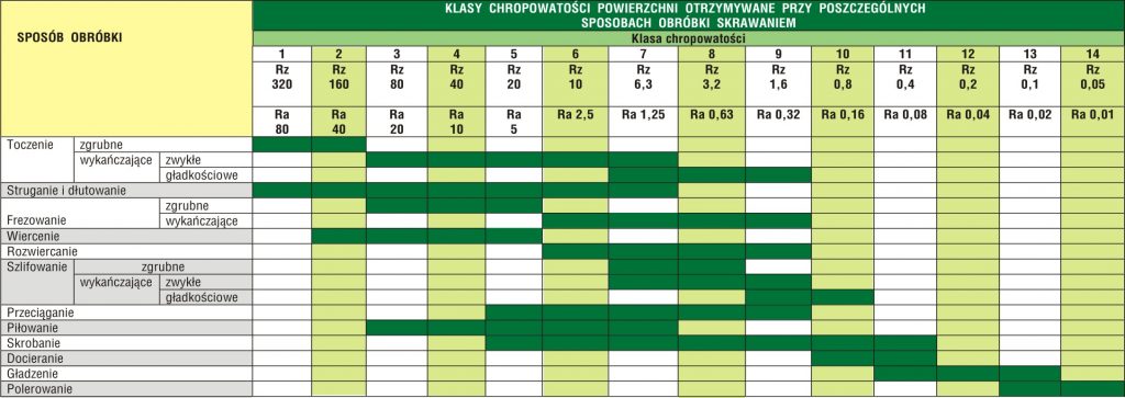 Zalecany profil wysokości chropowatości przylg: Rz = 12,5 – 50 mm; Ra = 3,2 – 12,5 mm