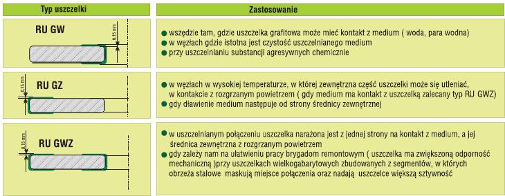 Zobacz poniżej typu uszczelek okuwanych, z barierą dyfuzyjną RU GW